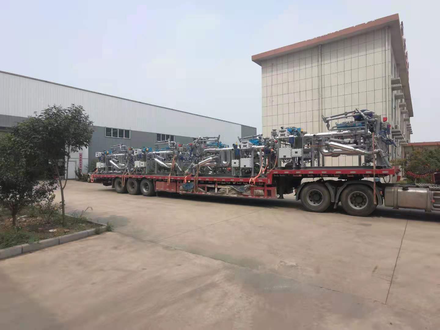 油品及化工品定量裝車(chē)橇裝組是指將每一個(gè)裝車(chē)鶴位內(nèi)的儀表和設(shè)備集成在一個(gè)專(zhuān)用的框架結(jié)構(gòu)內(nèi),儀表和設(shè)備包括裝車(chē)鶴管、流量計(jì)、防溢油靜電報(bào)警控制器、壓力變送器、裝車(chē)流量控制閥、緊急切斷閥,裝車(chē)泵、批量控制器等, 只預(yù)留工藝連接口和控制電源和通訊接口,這個(gè)整體集成部分稱(chēng)為裝車(chē)橇。與傳統(tǒng)的裝車(chē)控制系統(tǒng)就地組裝比較,裝車(chē)橇可以節(jié)省現(xiàn)場(chǎng)設(shè)計(jì)和現(xiàn)場(chǎng)施工量,縮短項(xiàng)目工期,提高裝車(chē)控制系統(tǒng)的質(zhì)量。以下是近期公司定量裝車(chē)撬的生產(chǎn)及發(fā)貨現(xiàn)場(chǎng)。